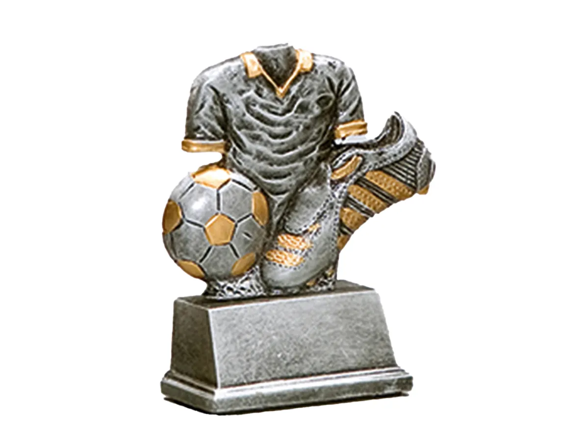 Este trofeo de fútbol infantil es el reconocimiento ideal para premiar el esfuerzo y la pasión de los pequeños jugadores. Su diseño innovador combina una camiseta, un balón y un botín, resaltando los elementos esenciales del fútbol. Hecho de material resistente con detalles en dorado y plateado, es perfecto para torneos, ligas escolares y eventos deportivos juveniles.
