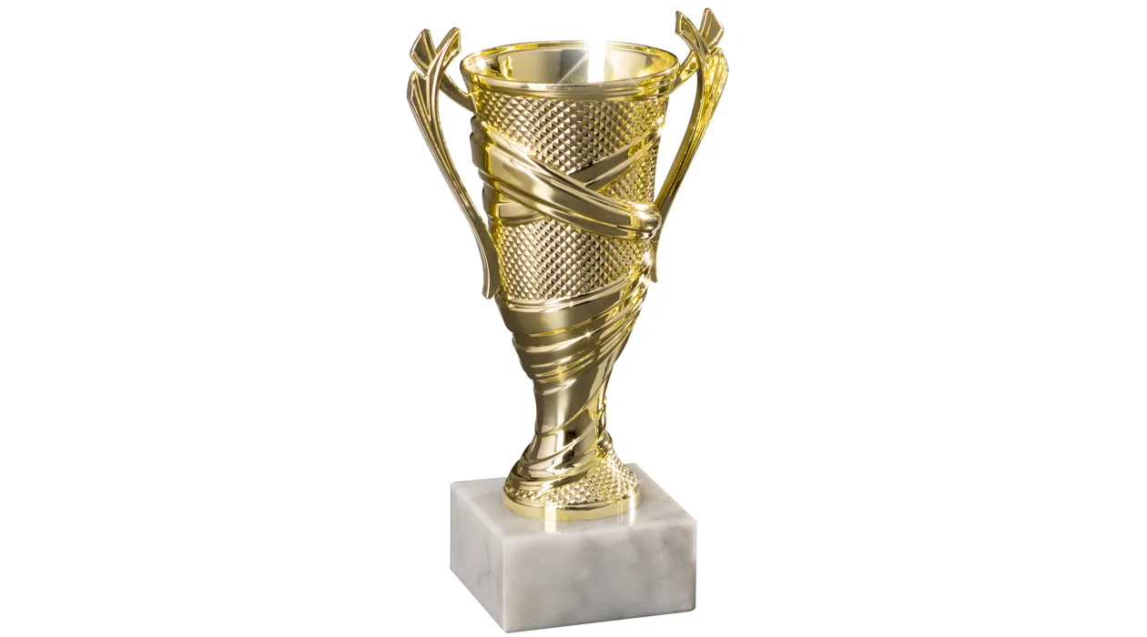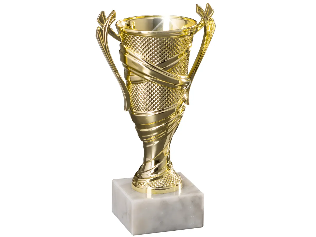 Haz que cada logro brille con este trofeo de oro de diseño único. Con una estructura detalladamente trabajada, este galardón presenta un acabado dorado con textura de diamante y elegantes detalles en espiral que envuelven la copa. Sus asas estilizadas aportan un toque de distinción, convirtiéndolo en la elección perfecta para premiaciones deportivas, eventos corporativos, torneos y reconocimientos especiales.