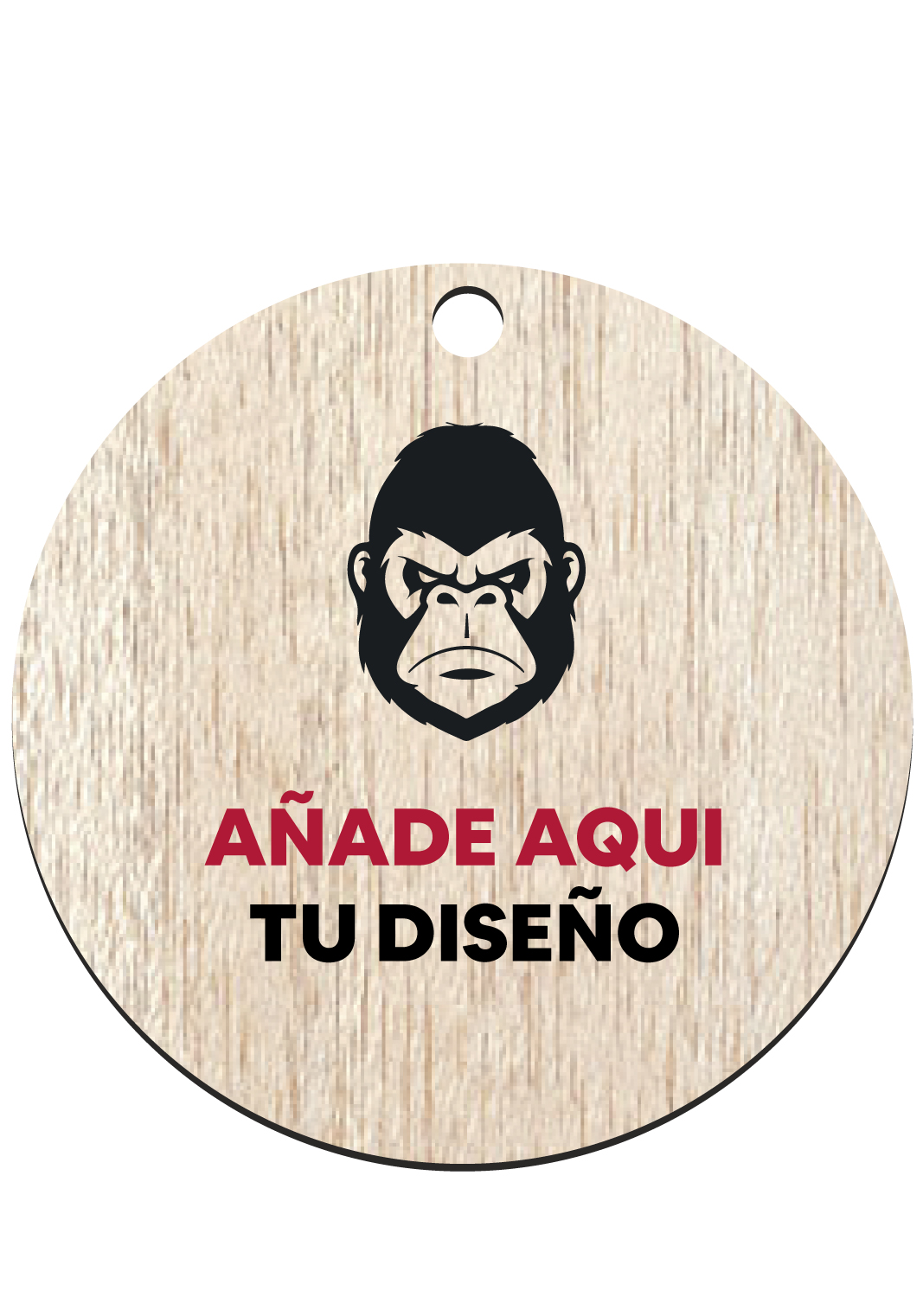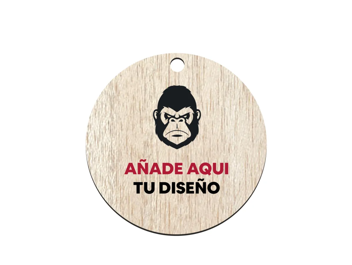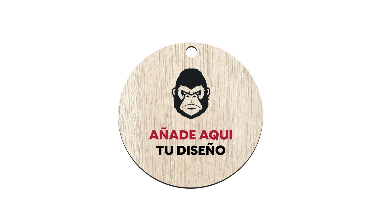 Medalla de madera natural y sostenible de 6 cm de ancho, con apertura para colgar una cinta o lanyard. La madera tiene un espesor de 4/5mm y permite grabar su diseño a todo color en todo el área de la medalla.