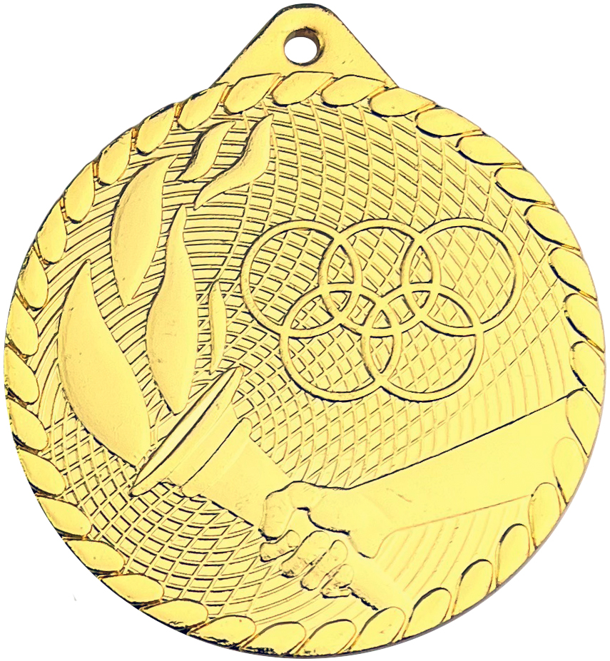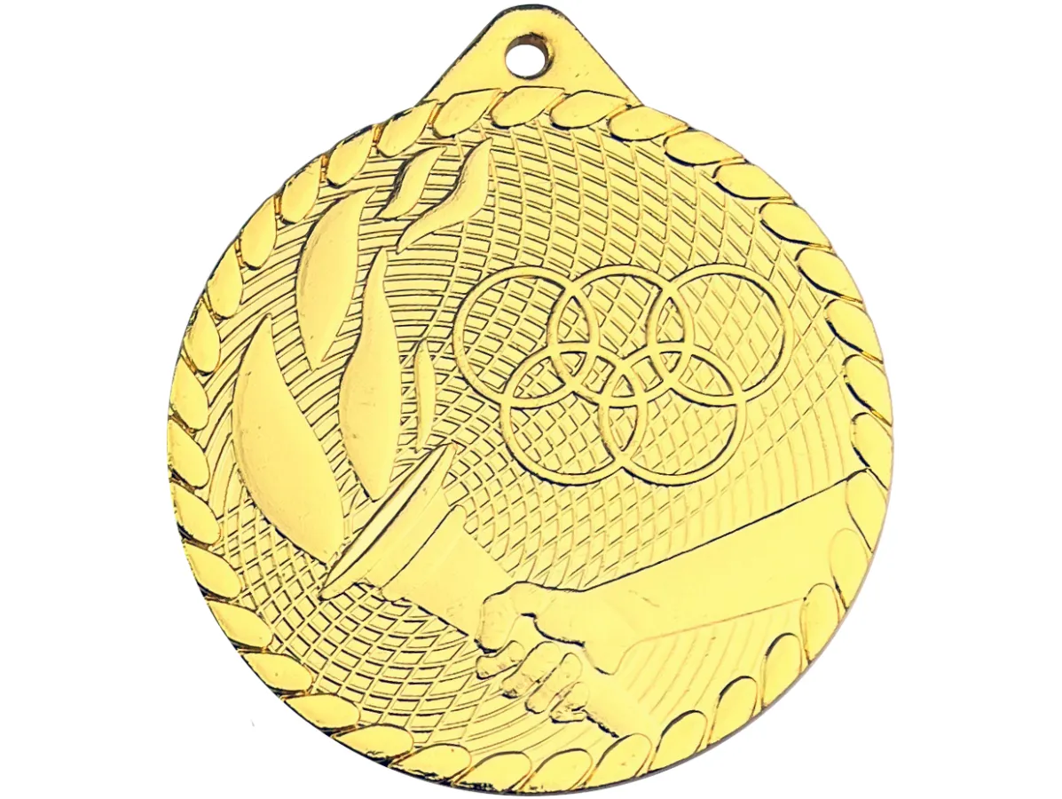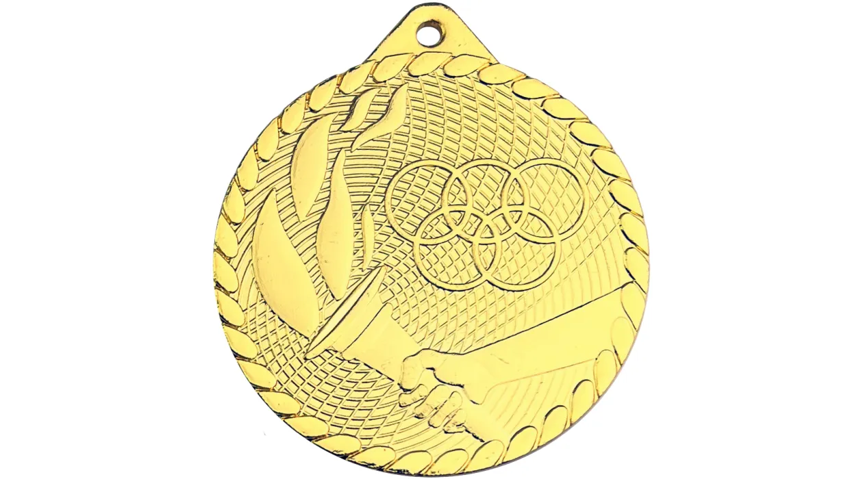 Medalla de Metal Dorada con Diseño de Antorcha y Aros – Reconocimiento Deportivo de Alto Nivel 🏆🔥🌟 Celebra la grandeza deportiva con esta medalla de metal dorada inspirada en el espíritu olímpico. Su diseño presenta una antorcha en alto, símbolo de determinación y triunfo, junto con un fondo texturizado y aros entrelazados.