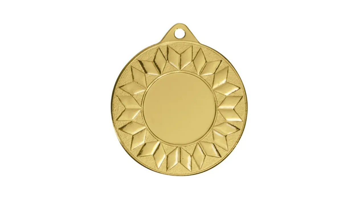 🏅 Celebra cada logro con esta medalla dorada de alta calidad, perfecta para eventos deportivos, académicos y reconocimientos especiales. Su diseño elegante incorpora un patrón geométrico en relieve, resaltando su apariencia sofisticada y exclusiva.