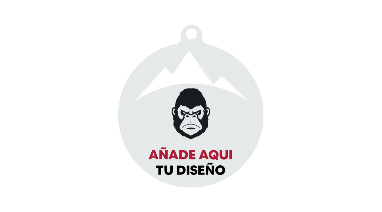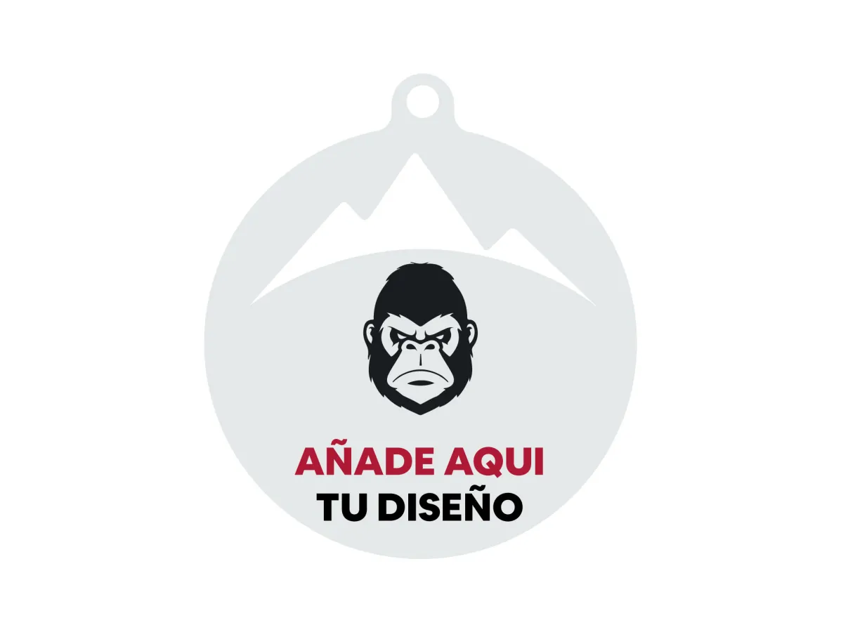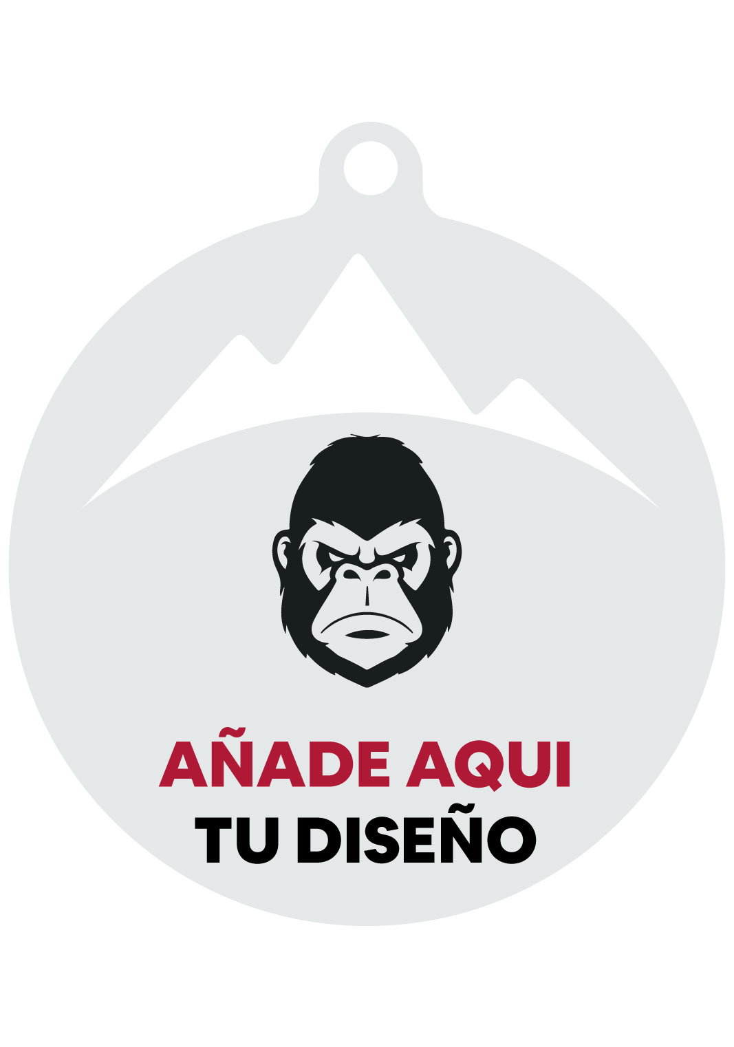Medalla de metacrilato moderna con calado de montañas, en color transparente de 60 mm de diámetro y con un grosor de 3 mm, para grabación a color perfecto para textos, logos, etc.