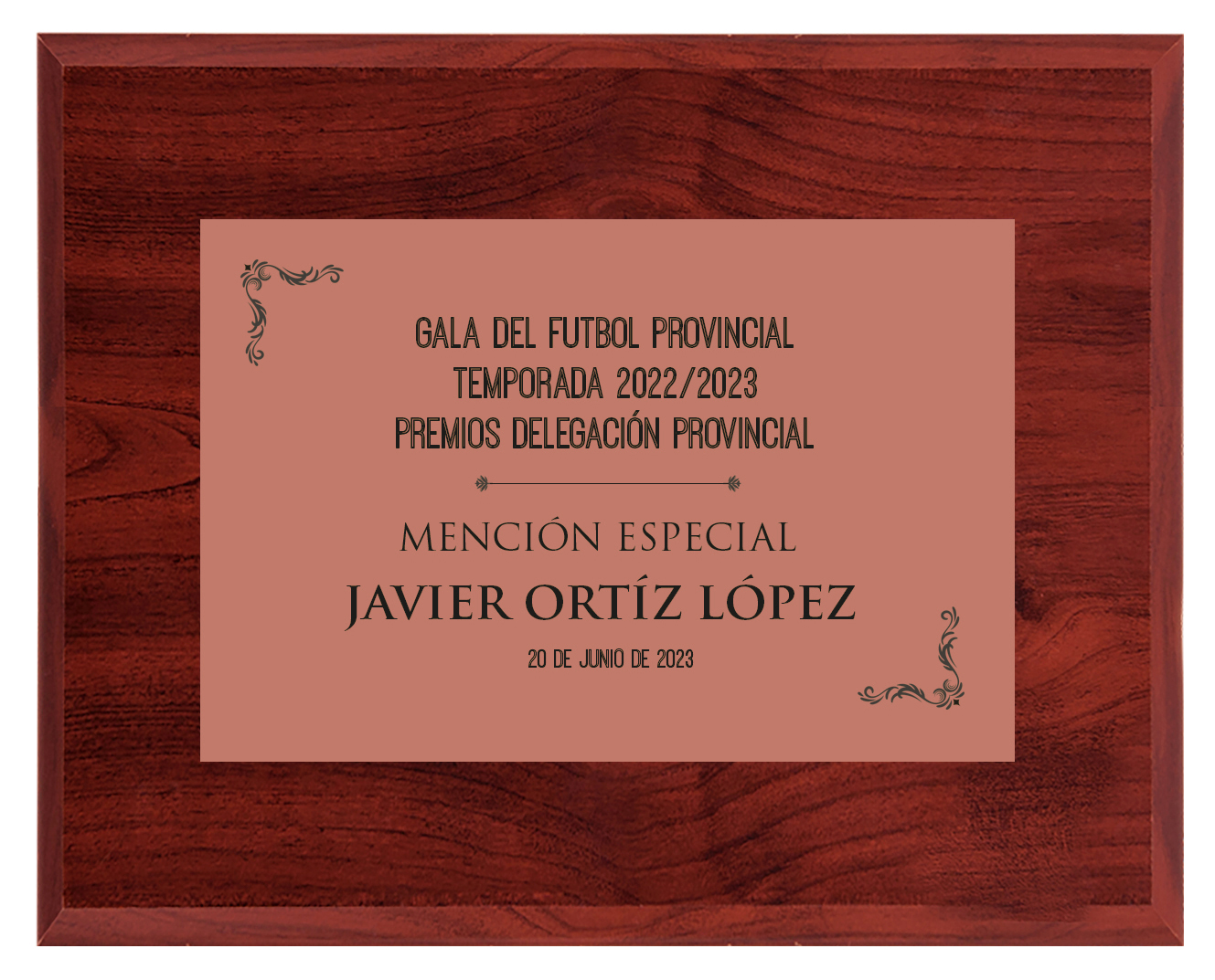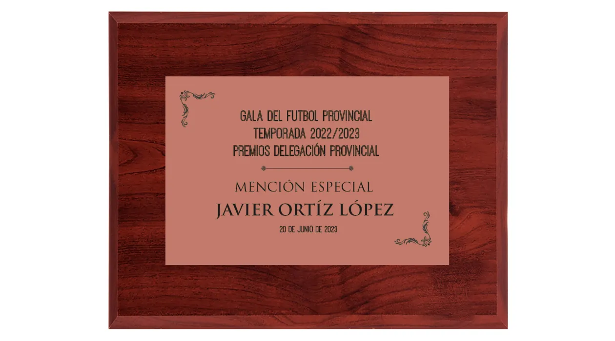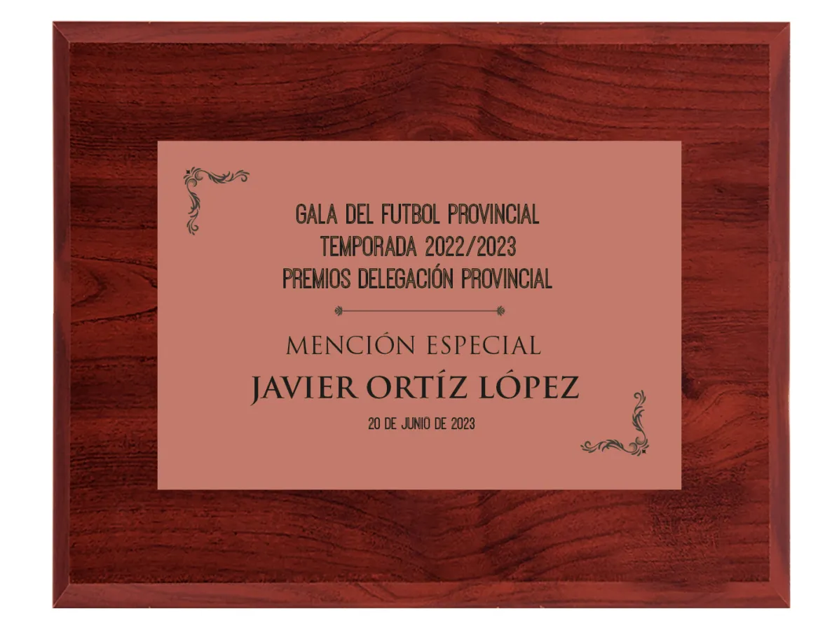 Características del Producto: ✨ Material de calidad: Base de madera resistente con acabado en tono caoba. 🖋️ Placa metálica personalizable: Espacio amplio para grabado de nombres, fechas y dedicatorias. 📏 Tamaño ideal: Perfecta para exhibición en oficinas, salas de trofeos o estanterías. 🏆 Uso versátil: Reconocimientos deportivos, premios corporativos, eventos escolares y más. 🎉 Haz que cada logro sea inolvidable con una placa que refleja la excelencia y el esfuerzo. ¡Personalízala hoy mismo! 🏅