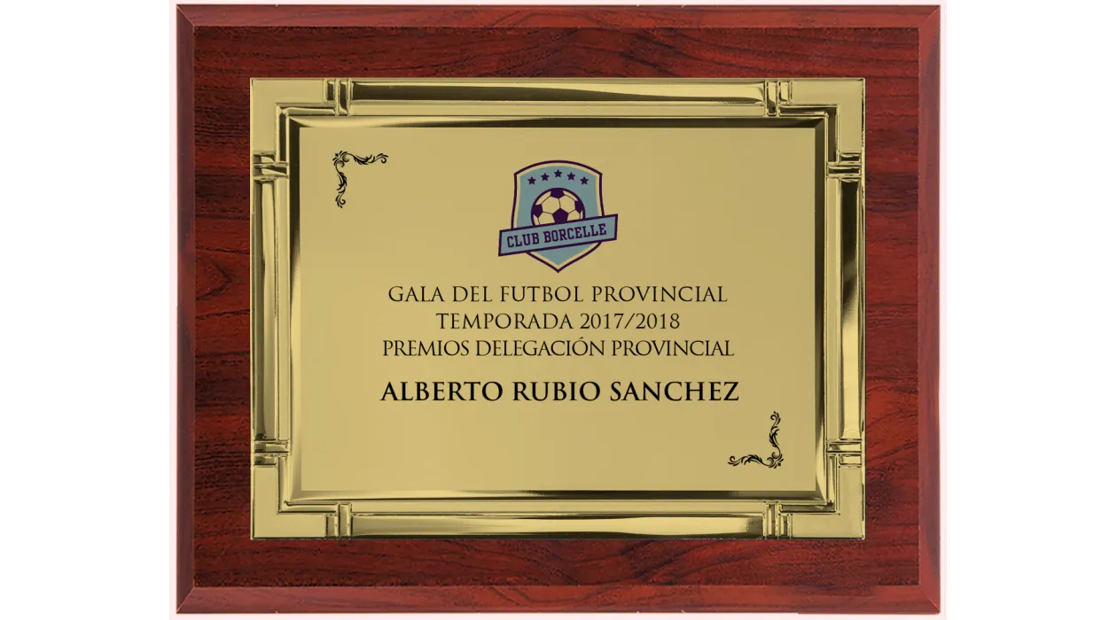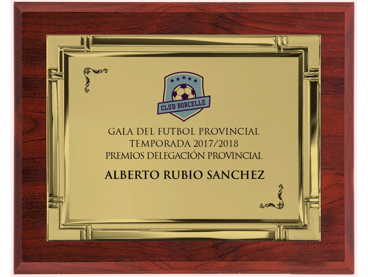 Características del Producto: ✨ Material de alta calidad: Base de madera con acabado pulido y placa metálica dorada con bordes decorativos. 🖋️ Personalizable: Espacio para grabado de nombres, logos y mensajes especiales. 📏 Dimensiones ideales: Perfecta para exhibición en oficinas, salas de trofeos o eventos. 🏆 Uso versátil: Ideal para reconocimientos deportivos, empresariales, académicos y más. 🎉 Haz que cada triunfo sea inolvidable con esta exclusiva placa de reconocimiento. ¡Personalízala ahora y entrega un premio que perdure en el tiempo! 🏅