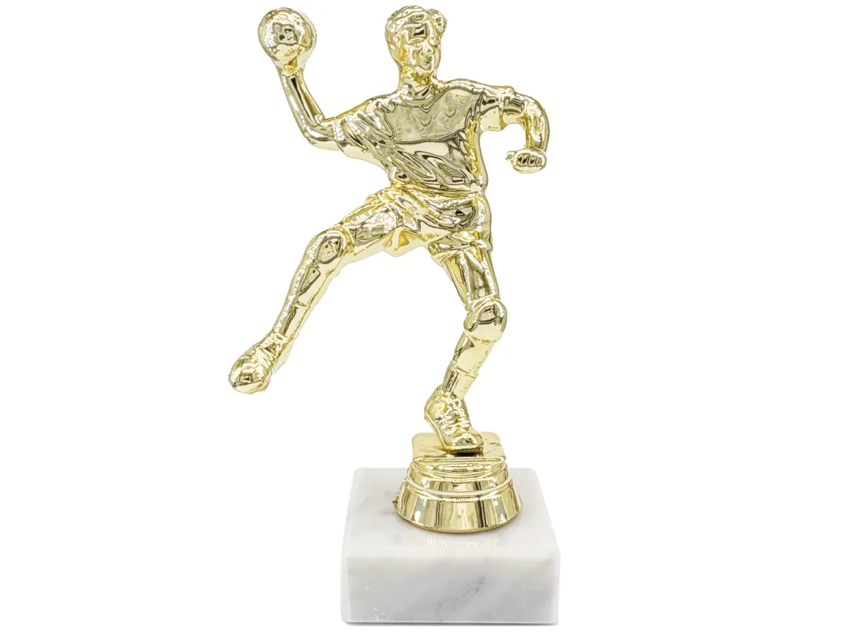 El trofeo de balonmano dorado con base de mármol es el reconocimiento ideal para torneos, ligas y competiciones de handball. Diseñado con una figura dinámica en pleno lanzamiento, este galardón simboliza la pasión, el esfuerzo y la destreza de los jugadores. Perfecto para premiaciones deportivas, eventos escolares, campeonatos locales y reconocimientos individuales o en equipo.