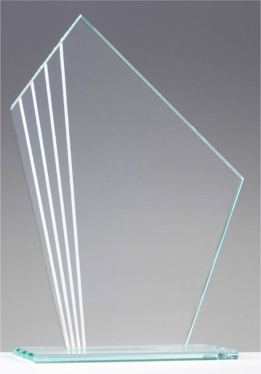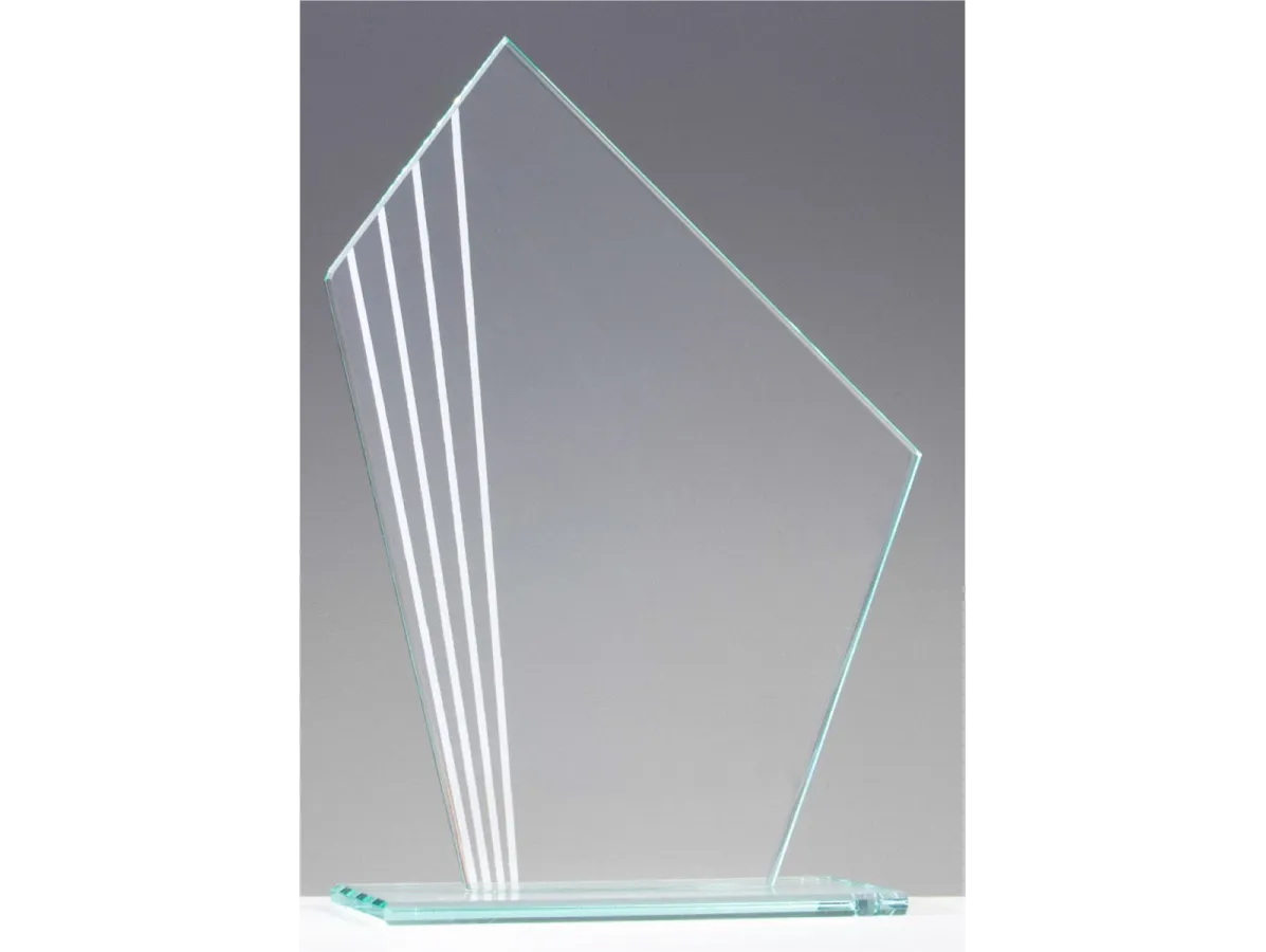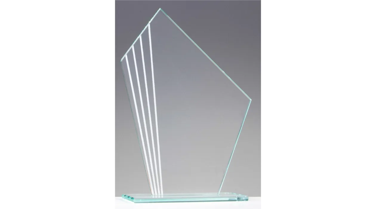 El trofeo de cristal con diseño geométrico es una pieza de reconocimiento única, ideal para premiar logros excepcionales. Su estructura moderna con líneas grabadas le aporta un toque de distinción y sofisticación, perfecto para eventos corporativos, deportivos y académicos.