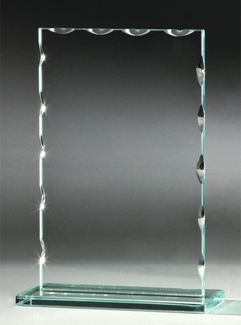 El trofeo de cristal rectangular con detalles calados es una opción sofisticada para reconocer la excelencia y los logros en cualquier ámbito. Su diseño refinado, con bordes decorativos tallados, lo convierte en un galardón ideal para premiaciones corporativas, académicas y deportivas.