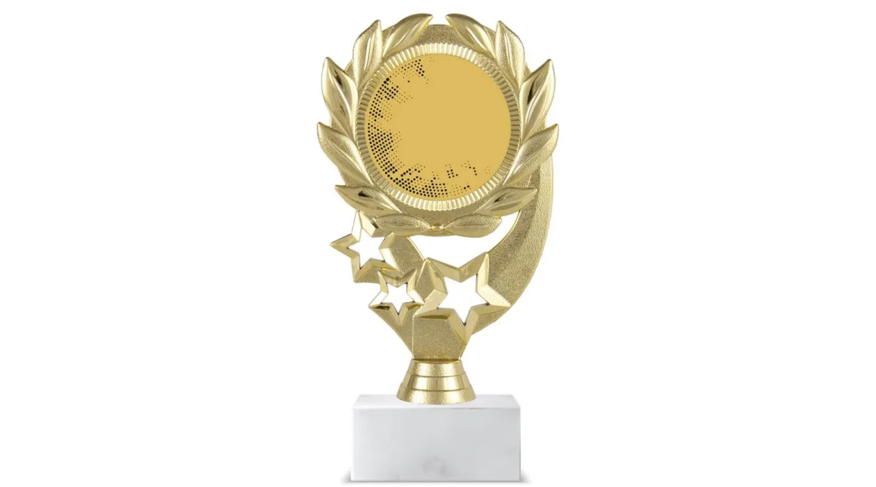 Características Destacadas: ✔ Material: Resina de alta calidad con acabado dorado brillante. ✔ Diseño: Estrella angular con curva ascendente, simbolizando el éxito. ✔ Base: Mármol sólido para un toque sofisticado y mayor resistencia. ✔ Área personalizable: Espacio circular ideal para grabado o placa con el nombre del ganador. ✔ Usos: Trofeo ideal para eventos deportivos, competencias académicas, premiaciones empresariales y más.
