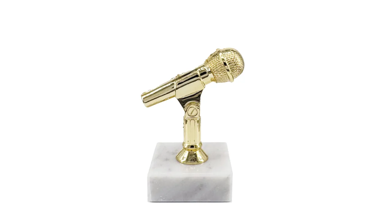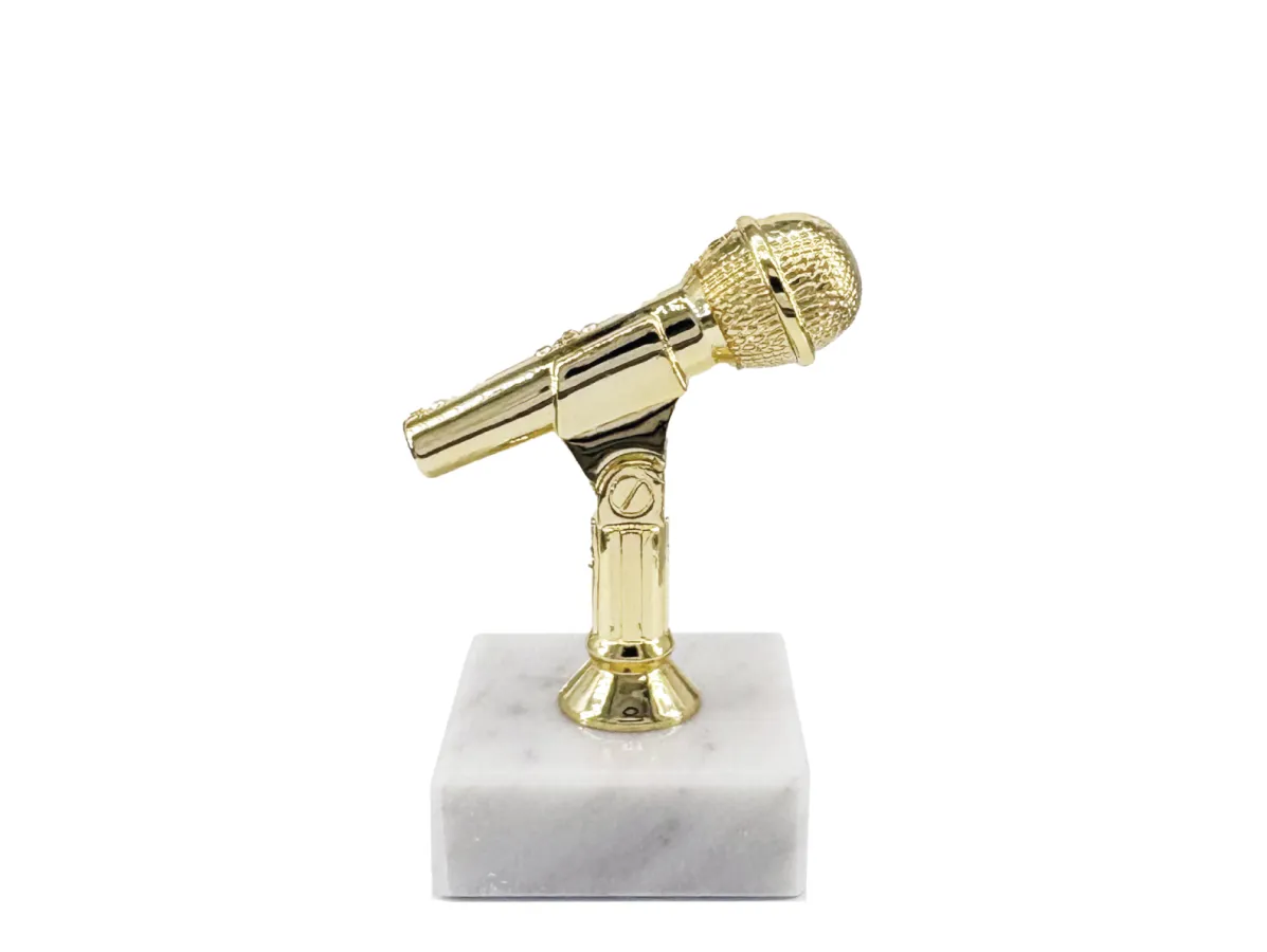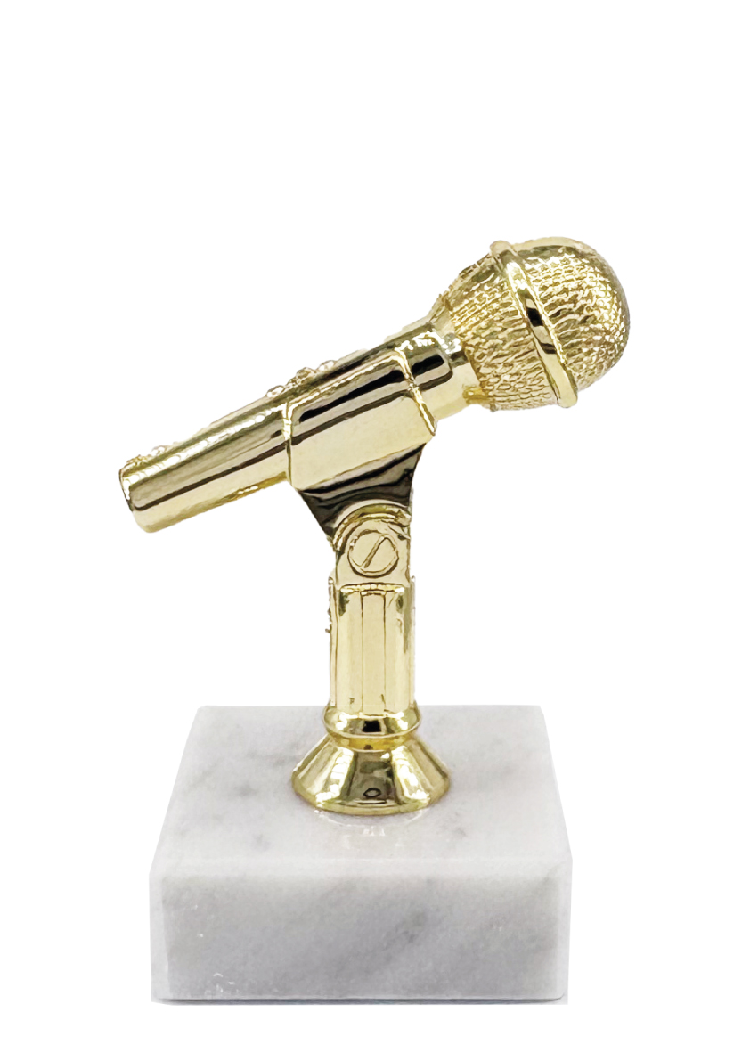 El trofeo de micrófono dorado con base de mármol es el galardón ideal para premiar el talento en el mundo de la música, el canto y la oratoria. Con un diseño elegante y detallado, este trofeo representa la excelencia artística y la pasión por la voz. Perfecto para concursos de canto, premiaciones de locución, karaoke, eventos de stand-up y reconocimientos especiales en el ámbito musical y comunicativo.