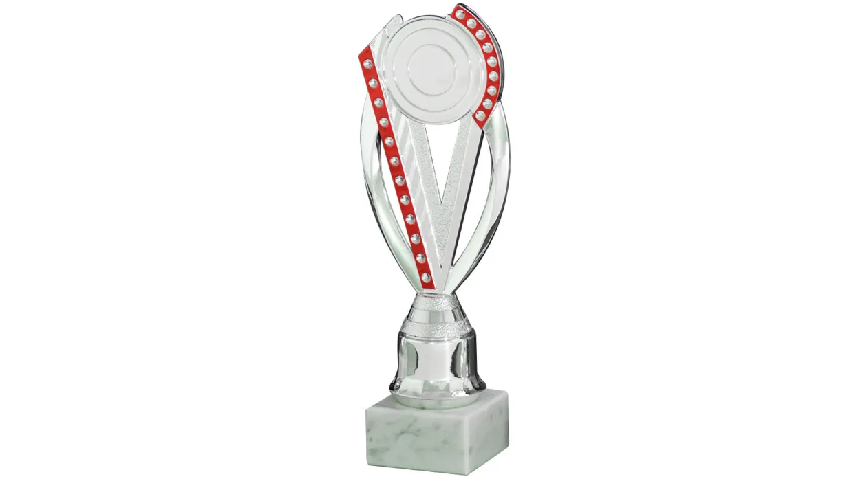 Este exclusivo trofeo de reconocimiento es la elección ideal para premiaciones deportivas, académicas y empresariales. Su diseño moderno combina un elegante acabado plateado con detalles en rojo vibrante y una base de mármol resistente, proporcionando un aspecto distinguido y sofisticado.Características Destacadas:✅ Material: Metal de alta calidad con detalles brillantes y base de mármol duradero.✅ Diseño Único: Forma estilizada con detalles en rojo y cristal para un acabado llamativo.✅ Dimensiones Perfectas: Proporciones equilibradas para exhibición en cualquier evento.✅ Personalización Disponible: Espacio para grabado de nombre, fecha o mensaje especial.✅ Uso Versátil: Ideal para competiciones deportivas, premiaciones académicas, eventos corporativos y más.Beneficios del Producto:🏆 Realza la importancia de cada logro con un galardón de alto impacto visual.🏆 Materiales de primera calidad que garantizan durabilidad y elegancia.🏆 Diseño exclusivo que destaca en cualquier ceremonia de premiación.🔹 Compra ahora y reconoce la excelencia con este espectacular trofeo. ✨
