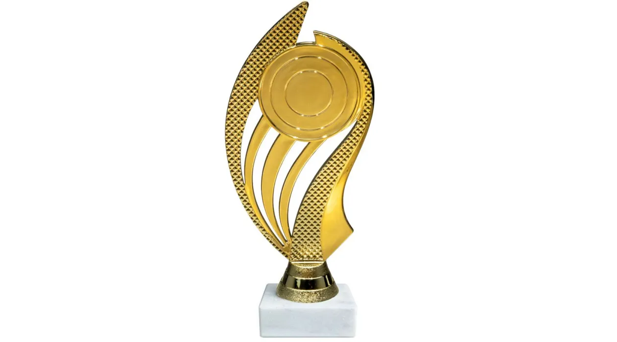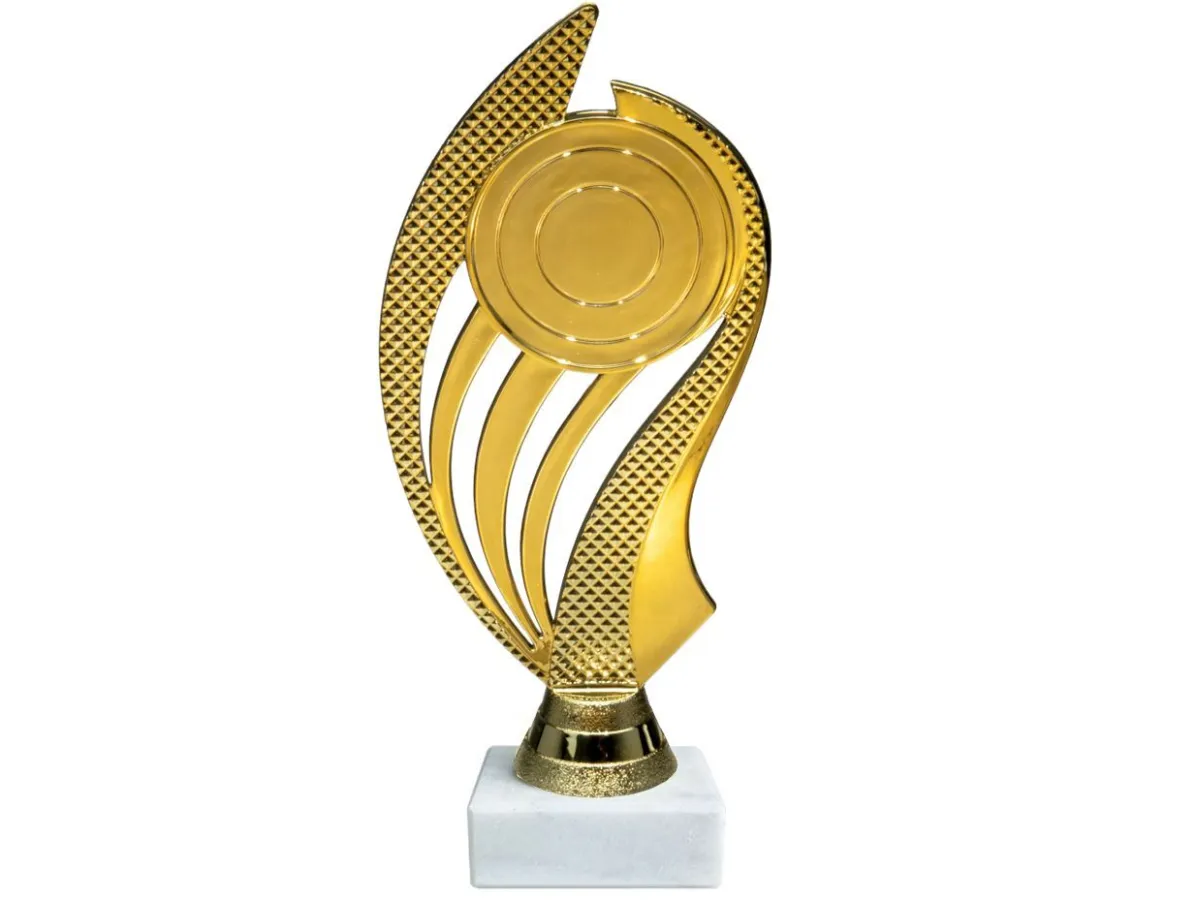 Características Principales: ✔ Material: Resina de alta calidad con acabado dorado brillante. ✔ Diseño: Silueta moderna con detalles en relieve y líneas ascendentes. ✔ Base: Mármol sólido que aporta estabilidad y sofisticación. ✔ Espacio personalizable: Área circular perfecta para grabado o placa con el nombre del ganador. ✔ Usos: Ideal para premios deportivos, reconocimientos corporativos, certámenes académicos y más.