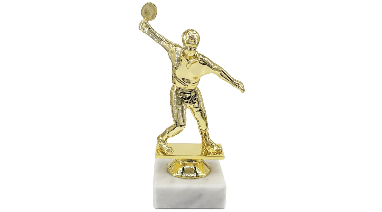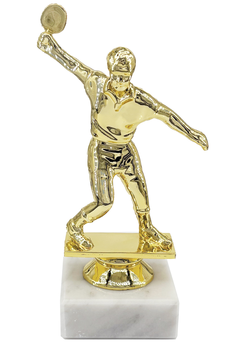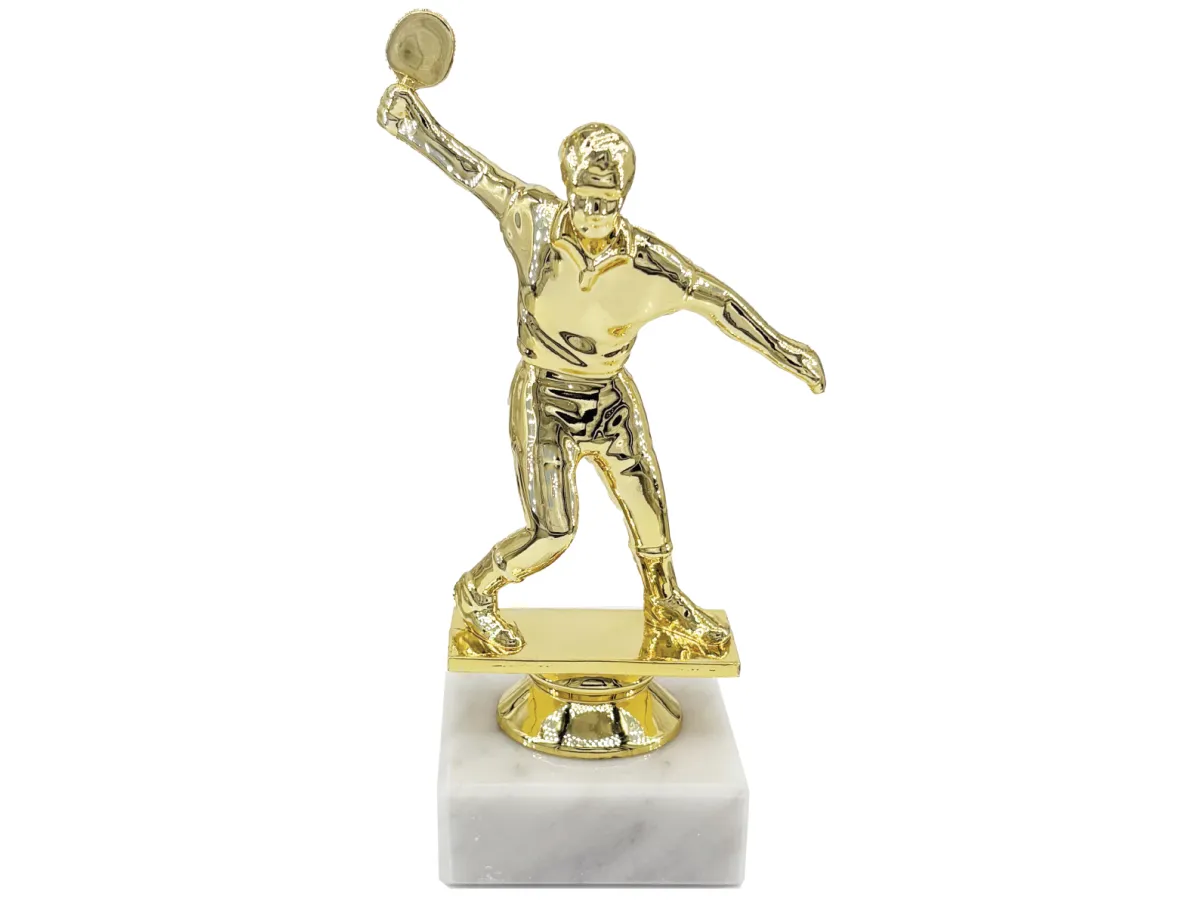 Este trofeo de tenis de mesa dorado con base de mármol es el reconocimiento perfecto para los jugadores más destacados en torneos, competiciones y eventos deportivos. Su diseño captura la esencia del deporte con una figura en acción, reflejando la pasión y el esfuerzo de los competidores. Ideal para premiaciones en clubes, ligas escolares, asociaciones deportivas y reconocimientos individuales.