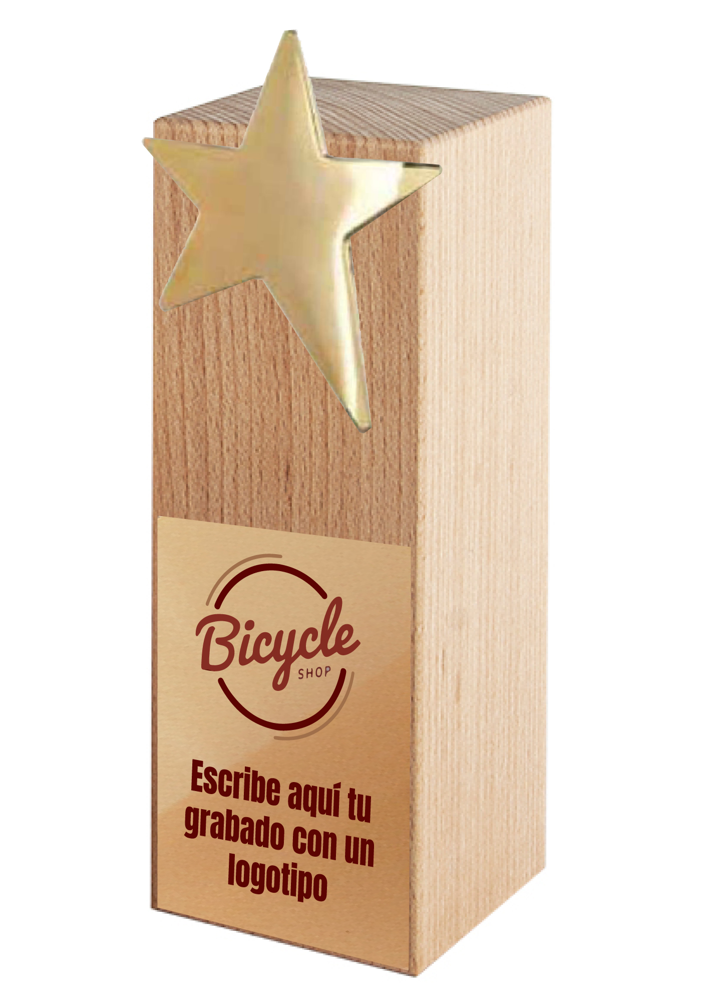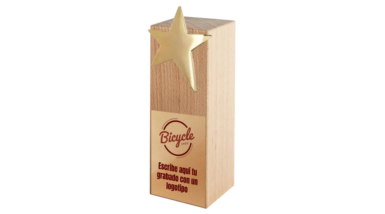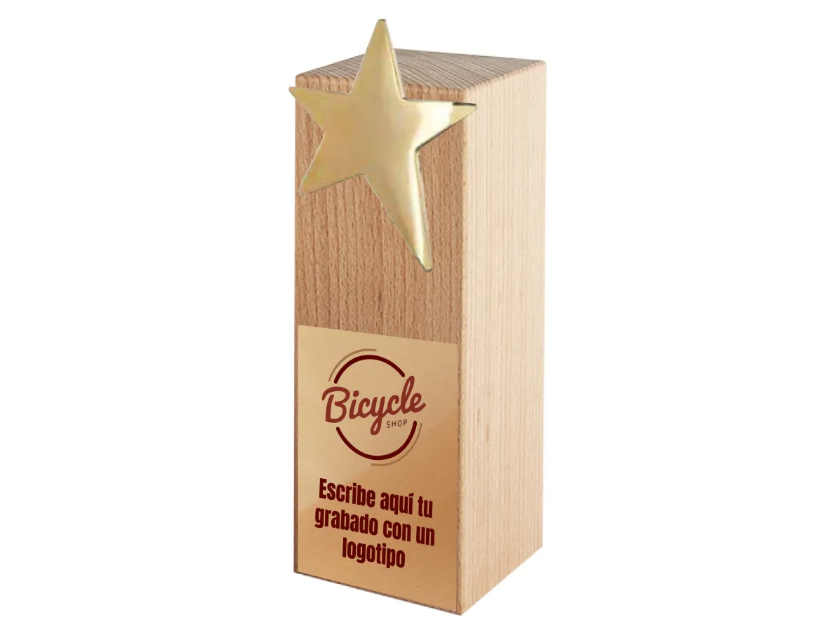 Trofeo de Madera con Estrella Dorada – Personalizable con Grabado Láser